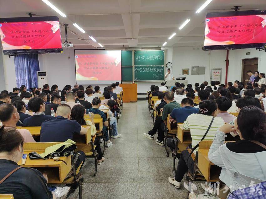 为帮助新生更好地规划大学生活、了解行业前沿,该校建筑工程学院邀请中建八局南方公司湖北区域总负责人、高级工程师陈青杰以《建筑寒冬中的破局与重生》为题,深入分析当前建筑行业面临的挑战与机遇,结合典型案例分享行业转型升级的路径,鼓励同学们夯实专业基础、拥抱变革,成为推动行业创新的新生力量。北京鸿鹄云图科技股份有限公司副总经理、首席技术官何小敏以《建筑工程行业的挑战、蜕变与未来机遇》为题,从行业现状与底层逻辑,行业的外延,行业新赛道和新机会、岗位升级及新兴职业等四个方面深入浅出分析了建筑工程行业未来的机遇,勉励同学们沉淀下来“练内功”,每个人的价值不取决于行业的冷热,而在于周期中修炼了多深的专业内功。