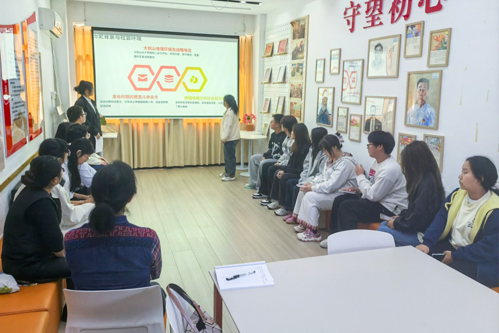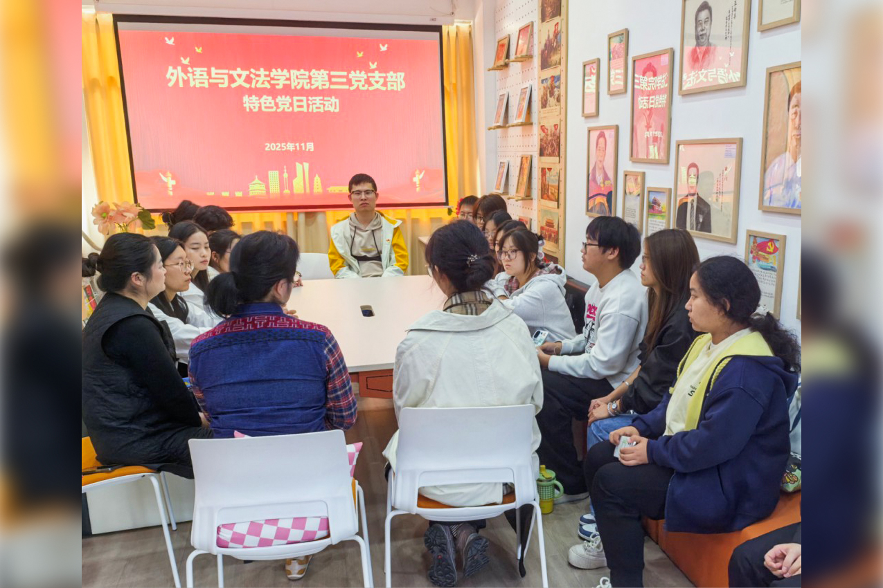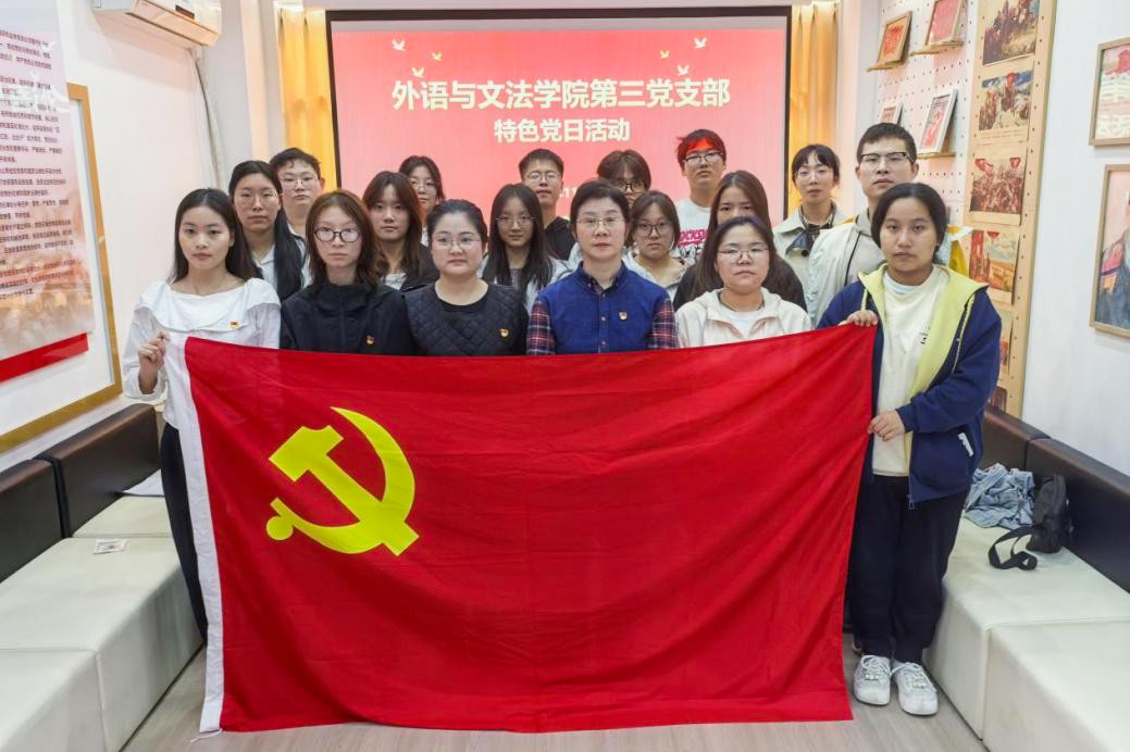 (通讯员 尹珊 杨依雪 摄影 孙历恒)为引导青年党员坚定政治自觉,矢志不渝听党话、跟党走,在学思践悟中凝聚奋进力量,争做新时代有为青年。2025年11月5日,外语与文法学院第三党支部在党群服务中心举办“赓续红色血脉,激扬青春担当”特色党日活动。