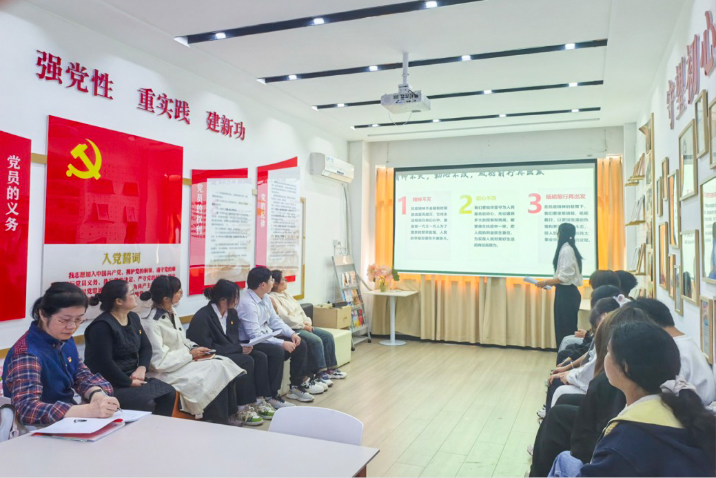 随后,全体人员集体观看了理论宣讲视频《峡江上的传承》。“语”路同行理论宣讲团的党员及入党积极分子,在实践中深刻感悟革命先辈的奋斗历程与共产党人的精神血脉。他们通过社区宣讲、群众帮扶等志愿行动,追寻宜昌三峡的红色足迹,将理论学习与服务人民紧密结合,使“志愿红”“党建红”与“传承红”同频共振,以实际行动诠释信仰的传承。