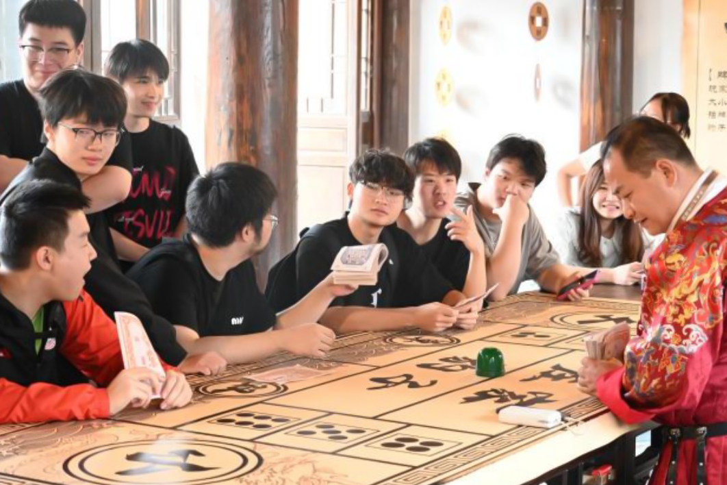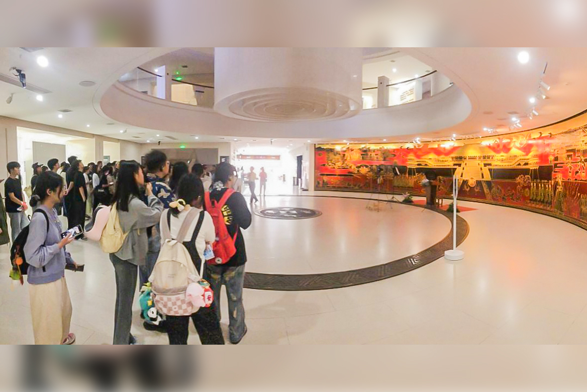 非遗文化板块的考察让学生深刻体会到中国传统文化的深厚底蕴与蓬勃创新活力。在云梦县博物馆,学生细致入微地观赏出土文物及传统工艺展品,探究云梦历史文化和非遗技艺的传承脉络,进一步激发了师生对传统文化元素的创新创作灵感。