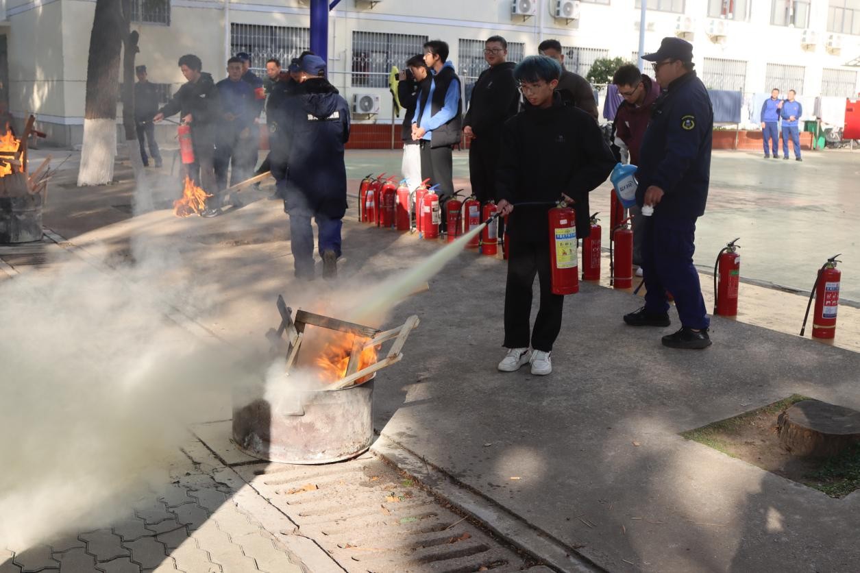 最后,进行消防器材实操训练。每个小组十名同学进行消防器材灭火演练,通过实操训练进一步增强师生消防安全意识。