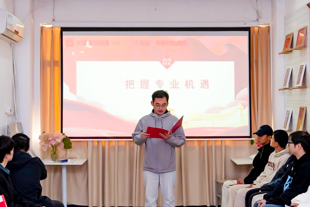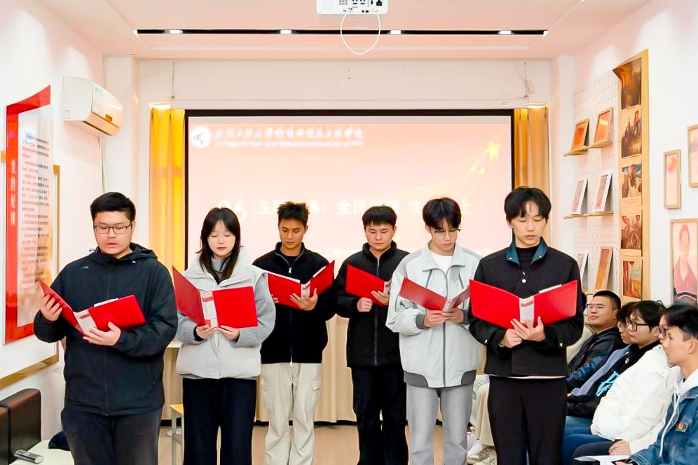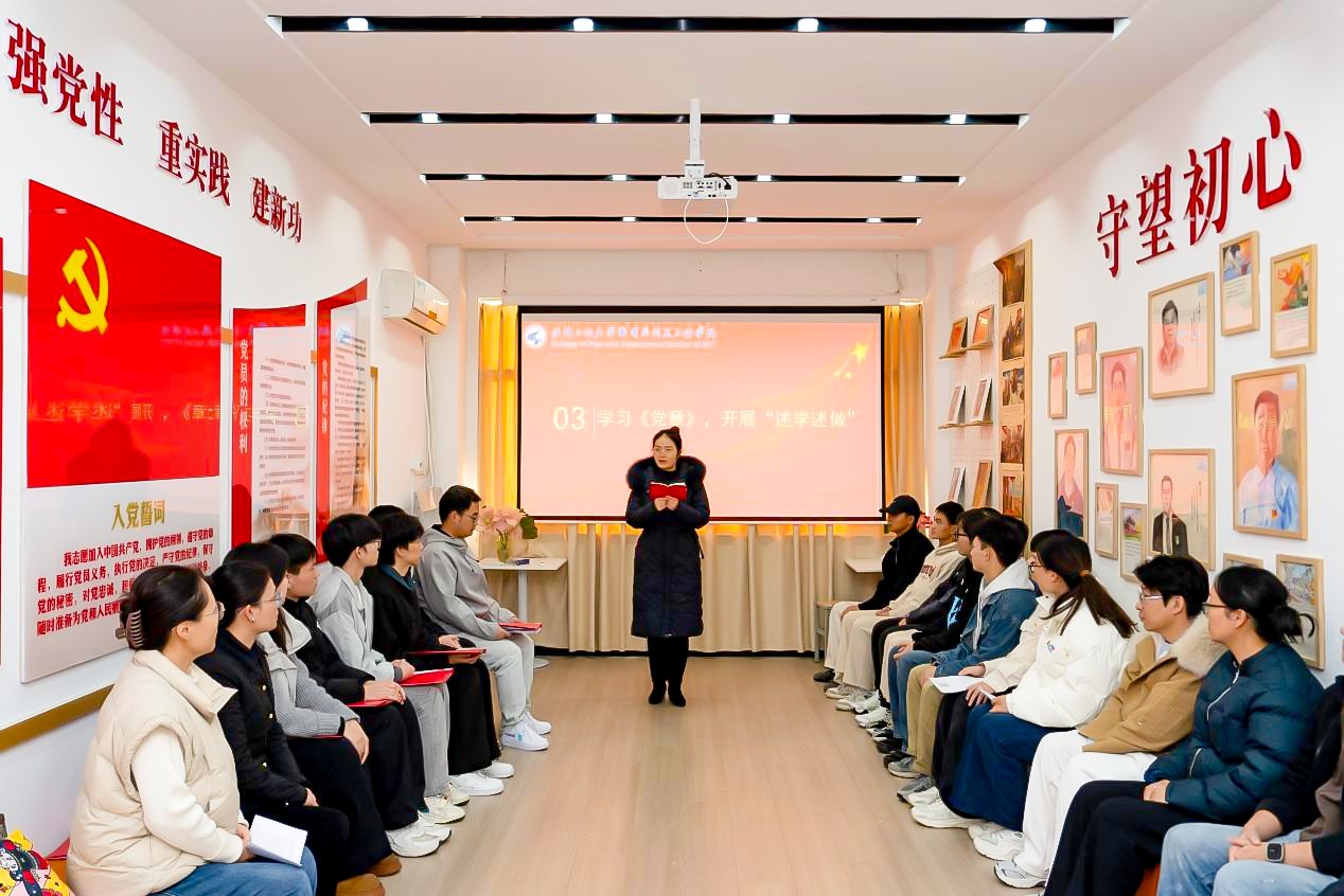 机械与电气工程学院副院长(主持工作)刘璐玲领学《中国共产党章程》第五章“党的基层组织”,进一步深化加强党的基层组织建设,提升基层党组织的组织力、凝聚力、战斗力的认识。学生党员龚琨洋、伍希文开展“述学述做”,结合专业实际分享了学习体会,明确了“以学促做、以做践学”的行动方向。