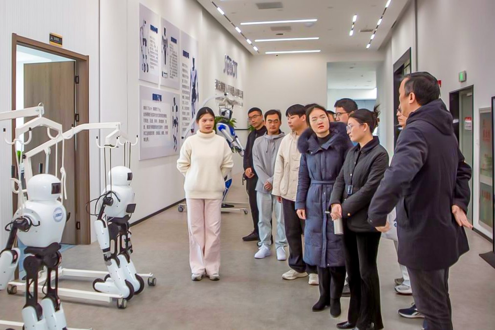 机械与电气工程学院师生党员代表走进湖北荆楚人形机器人有限公司,核心技术人员围绕商业、家居等领域的人形机器人场景矩阵进行详细讲解,重点展示了人形机器人在服务、安防、教育等场景的应用案例。通过产品演示与功能解析,党员同志直观了解了概念验证、中试服务、数据集成、场景验证四大核心功能背后的技术支撑力量,深刻感受到“科技赋能产业发展”的创新魅力。