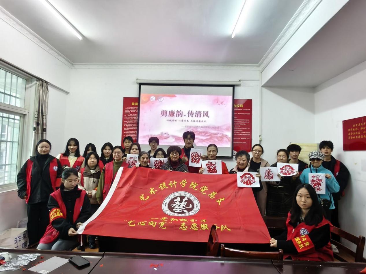 剪一纸,裁刻清廉风骨;一心一意,传承正气家风。11月19日下午,武汉工程大学邮电与信息工程学院艺术设计学院“艺心向党”志愿服务队走进长职苑社区,开展“剪廉韵 传清风”主题志愿服务活动。志愿者们与社区长者携手互动,在剪纸艺术中融汇廉洁文化,让清廉理念悄然浸润社区家园。