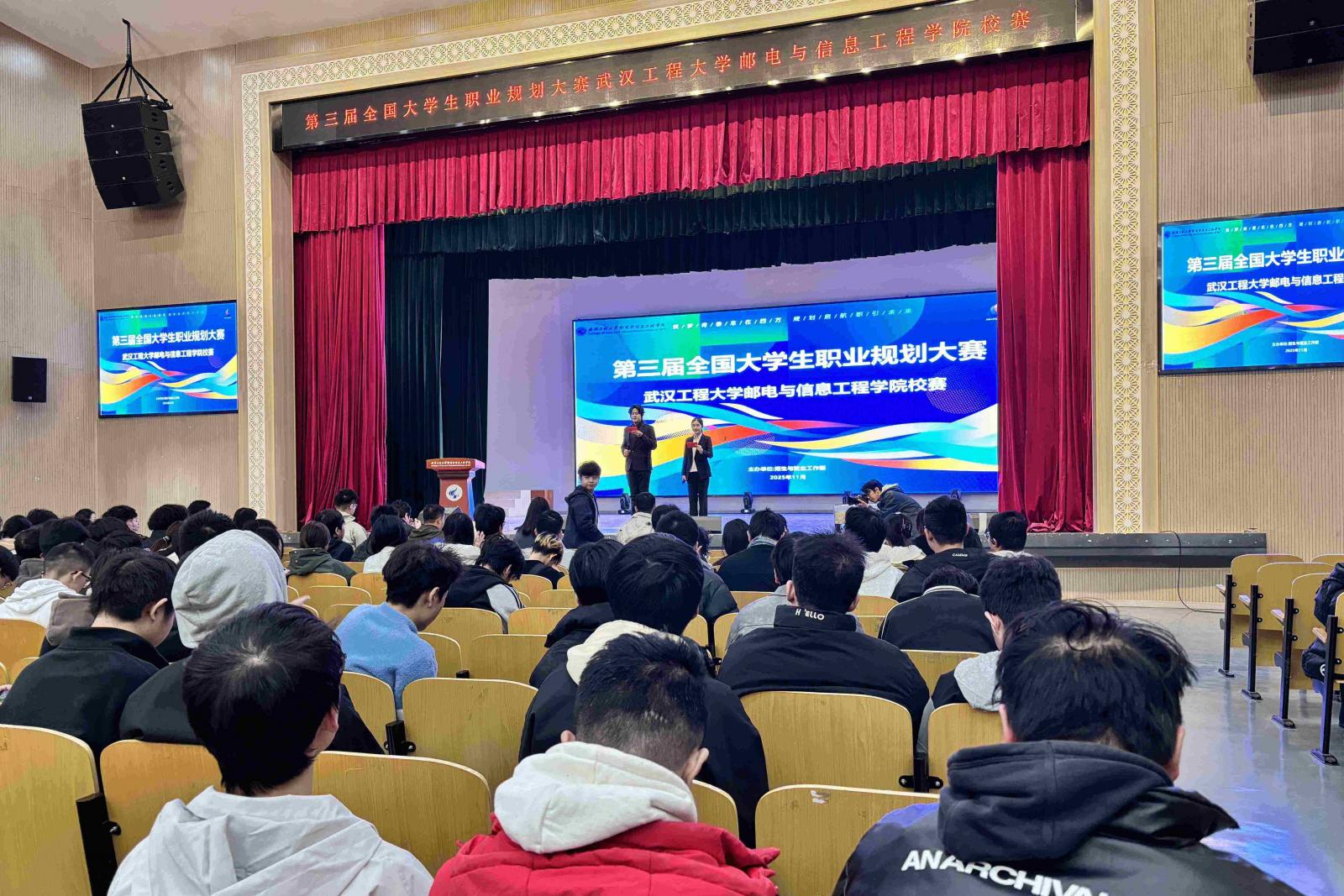 (通讯员 王敏 摄影 徐开颜 朱贝伊 张钰涵)为强化学校生涯教育与就业指导,增强大学生职业规划意识,全面提升学生生涯规划与就业竞争力,2025年11月28日下午,第三届全国大学生职业规划大赛武汉工程大学邮电与信息工程学院校赛决赛在武昌校区大礼堂隆重举行。学校招生与就业工作部、各二级学院(校区)副书记及辅导员、指导老师、学生代表共计500余人现场观看比赛。