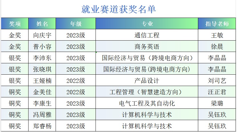 经过现场激烈角逐,成长赛道评选出金奖2名、银奖5名、铜奖6名;就业赛道评选出金奖2名、银奖3名、铜奖4名,评选出优秀指导老师若干名。