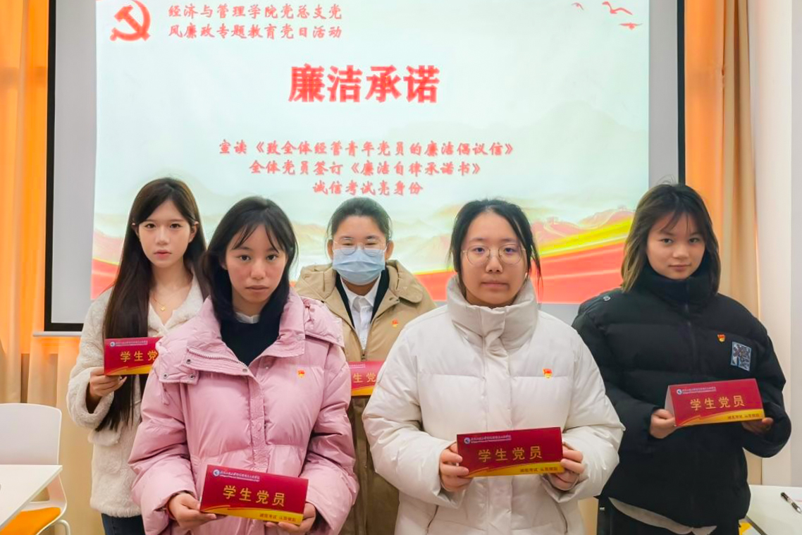 本次主题党日活动是经济与管理学院培育廉政文化品牌“青衿润廉”的生动实践。通过“党课导学、理论研学、宣讲促学、影教警学、实践践学”五维模式,学院将党风廉政建设的要求转化为青年可感知、可参与、可践行的成长教育,实现了党性锤炼、纪律教育与廉洁文化建设的有机融合,有力强化了学生党员的纪律意识与规矩意识,为其未来人生征程注入了坚定的清廉底色。经济与管理学院党总支将持续加强党风廉政建设,推动廉洁文化建设走深走实,为学院高质量发展提供坚强的纪律保障。