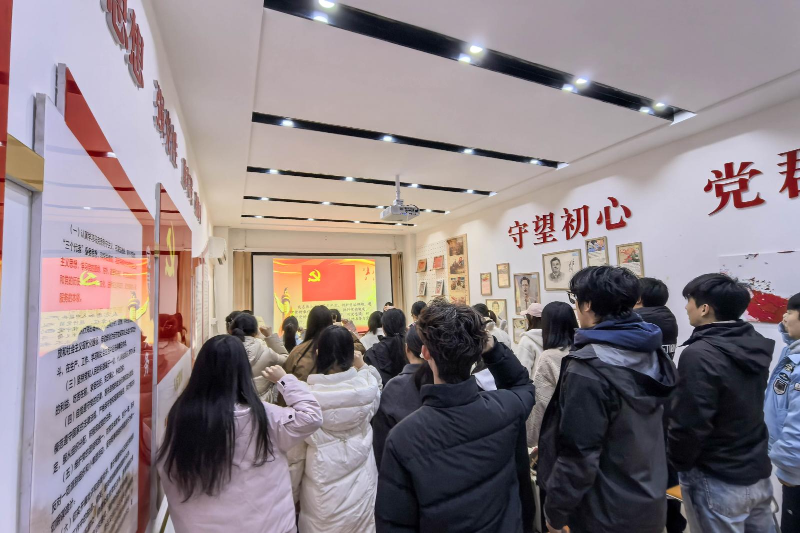 在国歌的庄严旋律中,主题党日活动拉开序幕。艺术设计学院第四党支部书记、党务干事张琴敏老师带领党员们重温入党誓词。