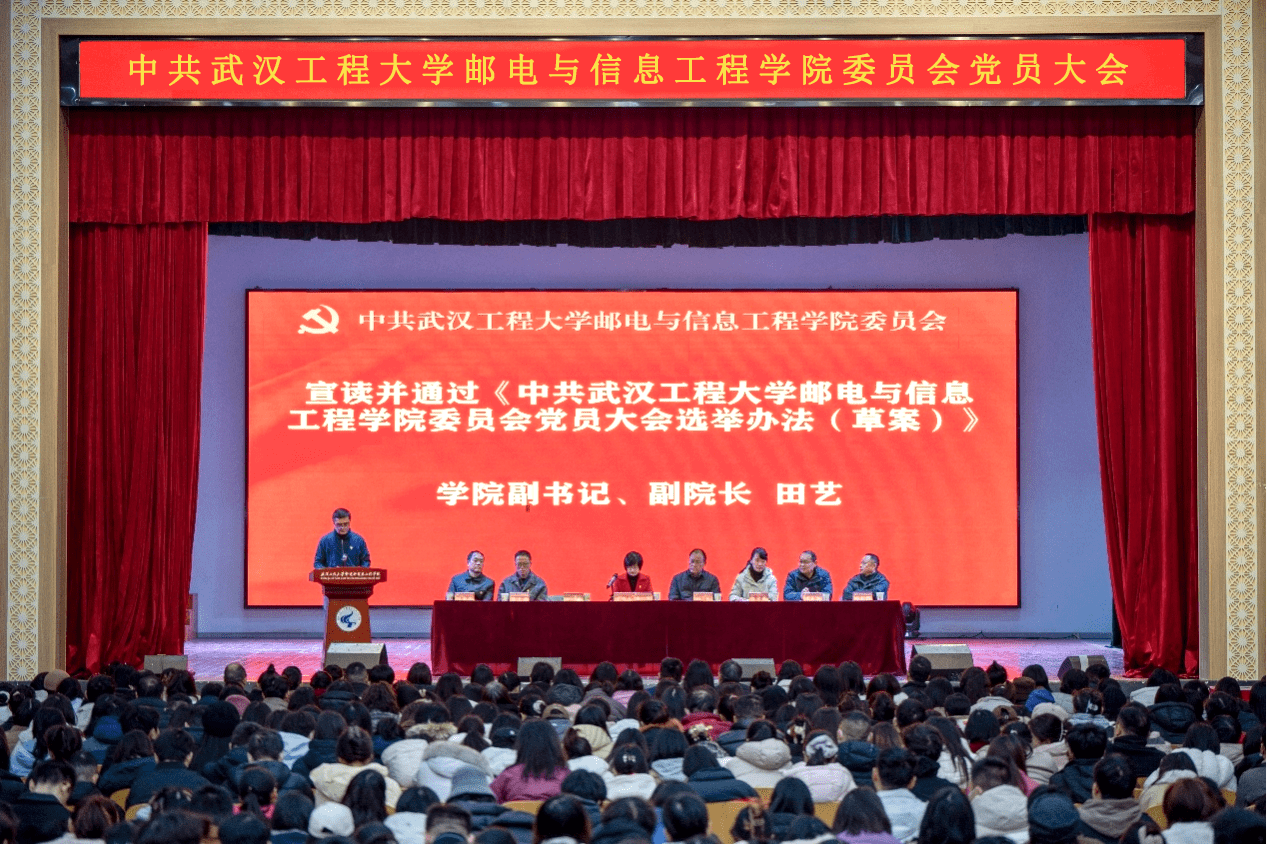 (通讯员 李薇 摄影 李耀洲 潘欣纯 向宗罡 徐开颜)2025年12月24日下午,中共武汉工程大学邮电与信息工程学院委员会换届选举暨第一届纪委选举党员大会在武昌校区大礼堂顺利召开。学院339名正式党员参加会议,大会由学院上一届党委书记李芳主持。