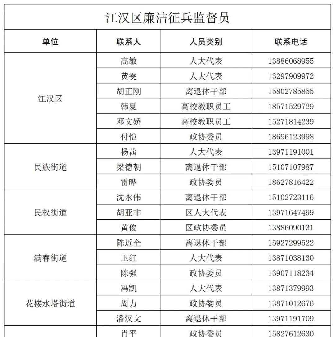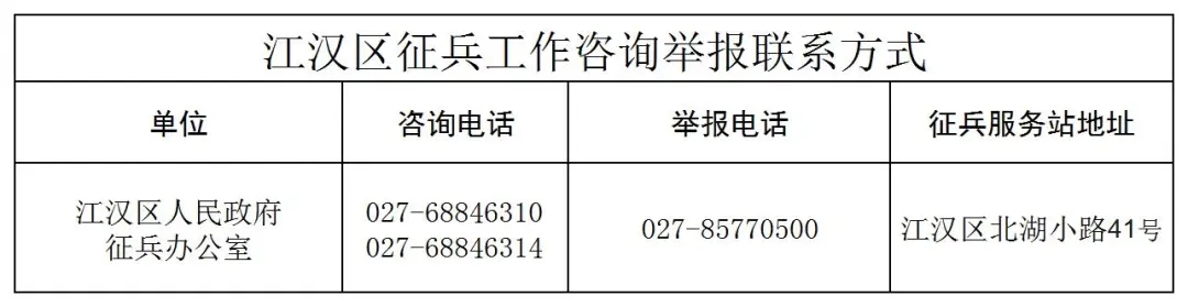 2026年全国征兵工作已经全面展开,为纯正征兵风气,规范征兵秩序,防止和纠正征兵工作中的不正之风,现将廉洁征兵“十不准”、廉洁征兵十个严禁、江汉区咨询举报联系方式和廉洁征兵监督员公布如下: