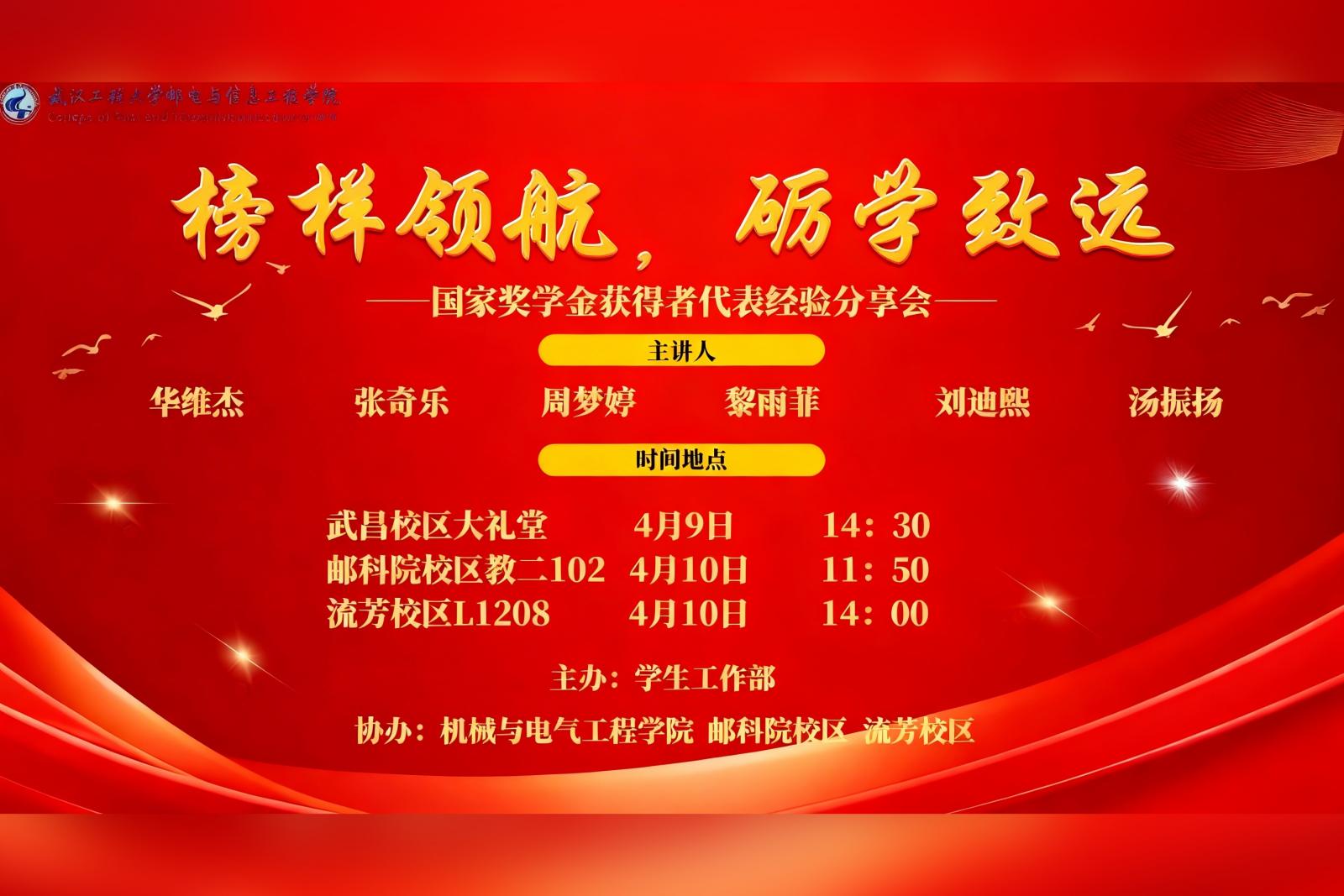 (通讯员 戚钰钒 石欢 汪玮珊)为充分发挥模范带头作用,强化资助育人成效,搭建同辈学习交流平台,激励广大学生积极进取,营造崇学尚优的校园文化氛围,2026年4月9日至10日,我院“榜样领航 励学致远”国家奖学金获得者代表经验分享会成功举办。本次活动由学生工作部主办,机械与电气工程学院、流芳校区、邮科院校区共同承办。