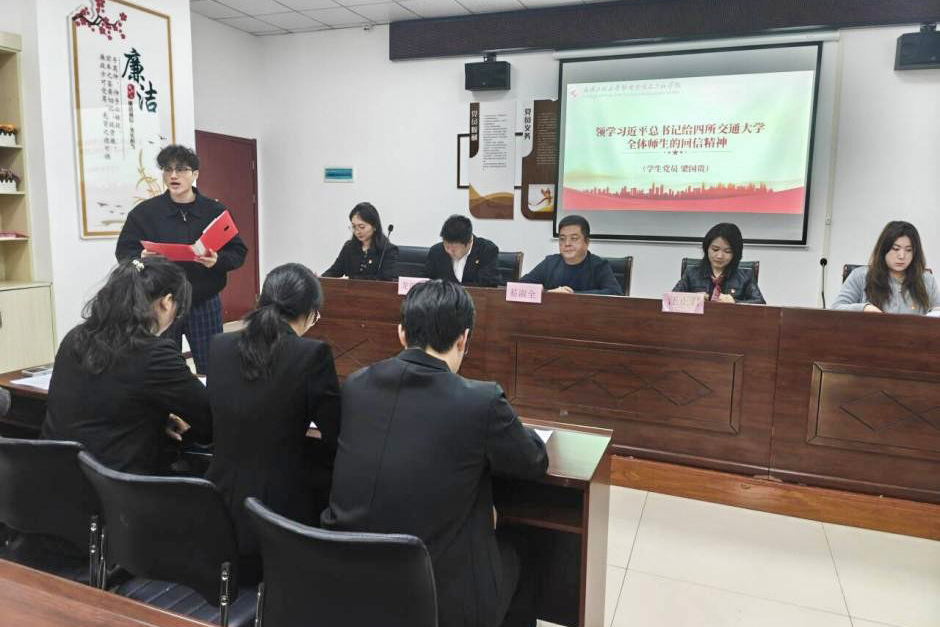 学生党员梁国贵领学习近平总书记给四所交通大学全体师生的回信精神,激励党员坚定理想信念、勇担时代使命,把个人成长融入国家发展大局。