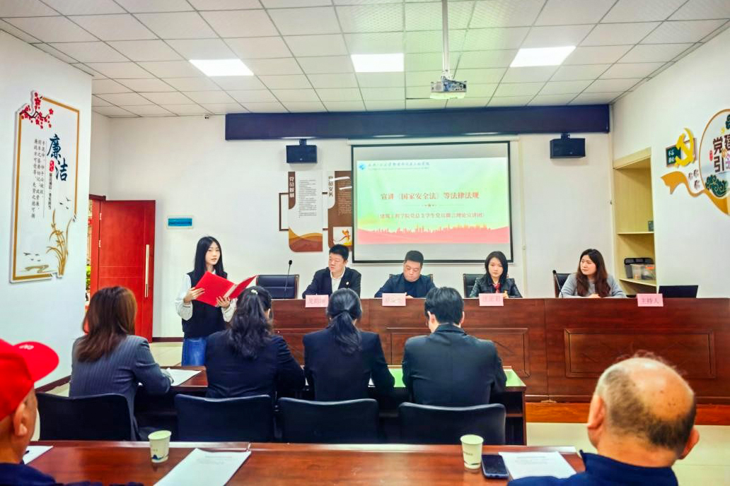 国家安全宣传教育环节内容丰富、形式新颖。建筑工程学院党总支学生党员微言理论宣讲团成员魏雪怡围绕《中华人民共和国国家安全法》等法律法规开展专题宣讲,普及国家安全法律知识。