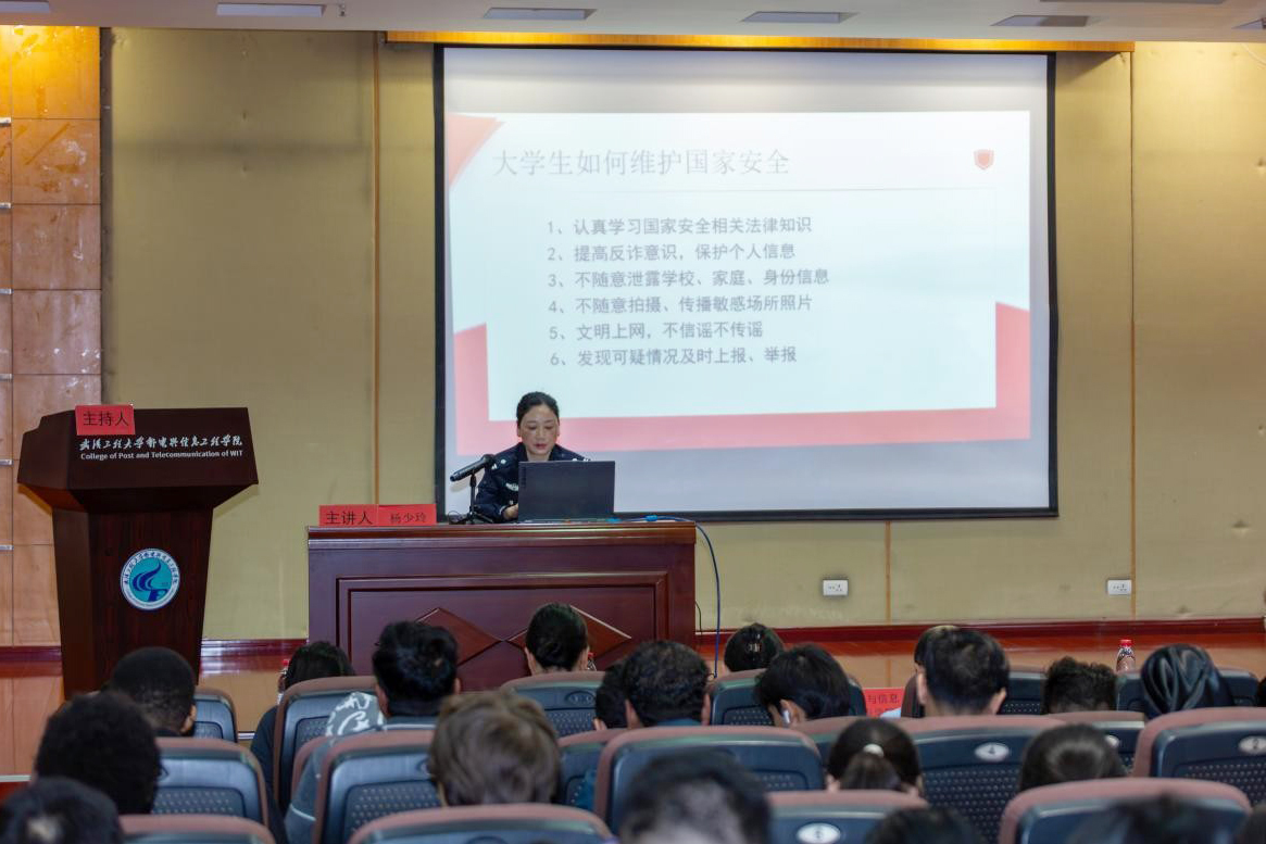(通讯员 李梦德)为深入贯彻落实总体国家安全观,进一步增强师生国家安全意识和素养,4月15日下午,学院在三教六楼多功能报告厅隆重举办国家安全教育专题讲座。本次活动由我院主办,武汉工程大学保卫处、土木工程与建筑学院、兴发矿业学院、国际学院等相关单位领导、师生代表共同出席。活动由机械与电气工程学院辅导员李梦德主持。